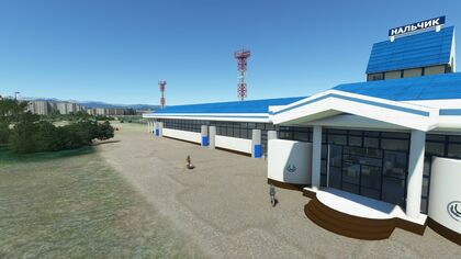 В аэропорт можно проехать автобусом или маршрутным такси 17-го или 24-го маршрутов. Из населённых пунктов КБР в г. Нальчик ходят пригородные автобусы. На привокзальной площади имеются ресторан «Оазис», кафе «Аэро», гостиница. На территории авиапредприятия имеются столовая, здравпункт.